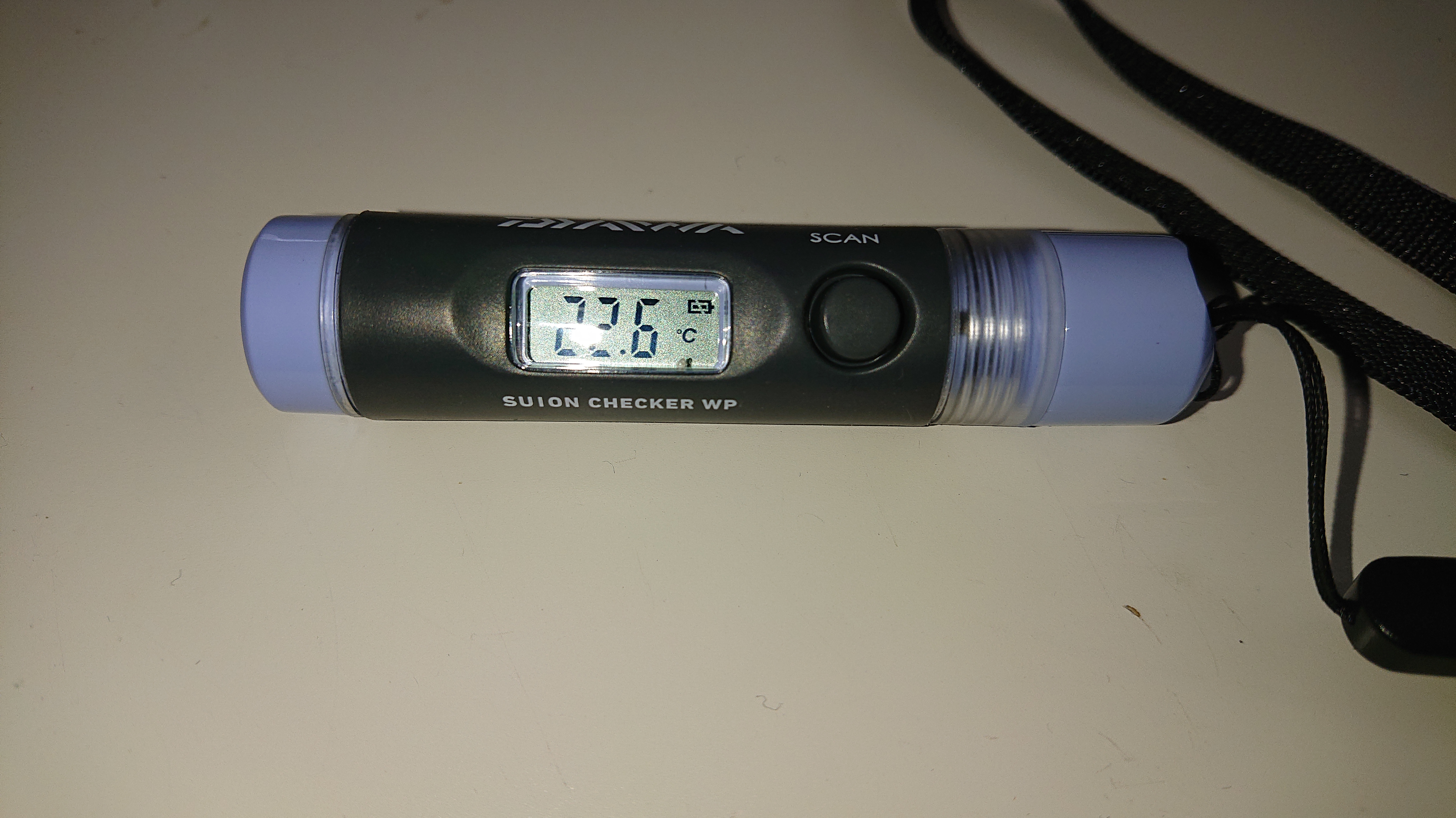 今回の赤外線タイプの水温計は、SCANっていうボタンを押すと測定されます。