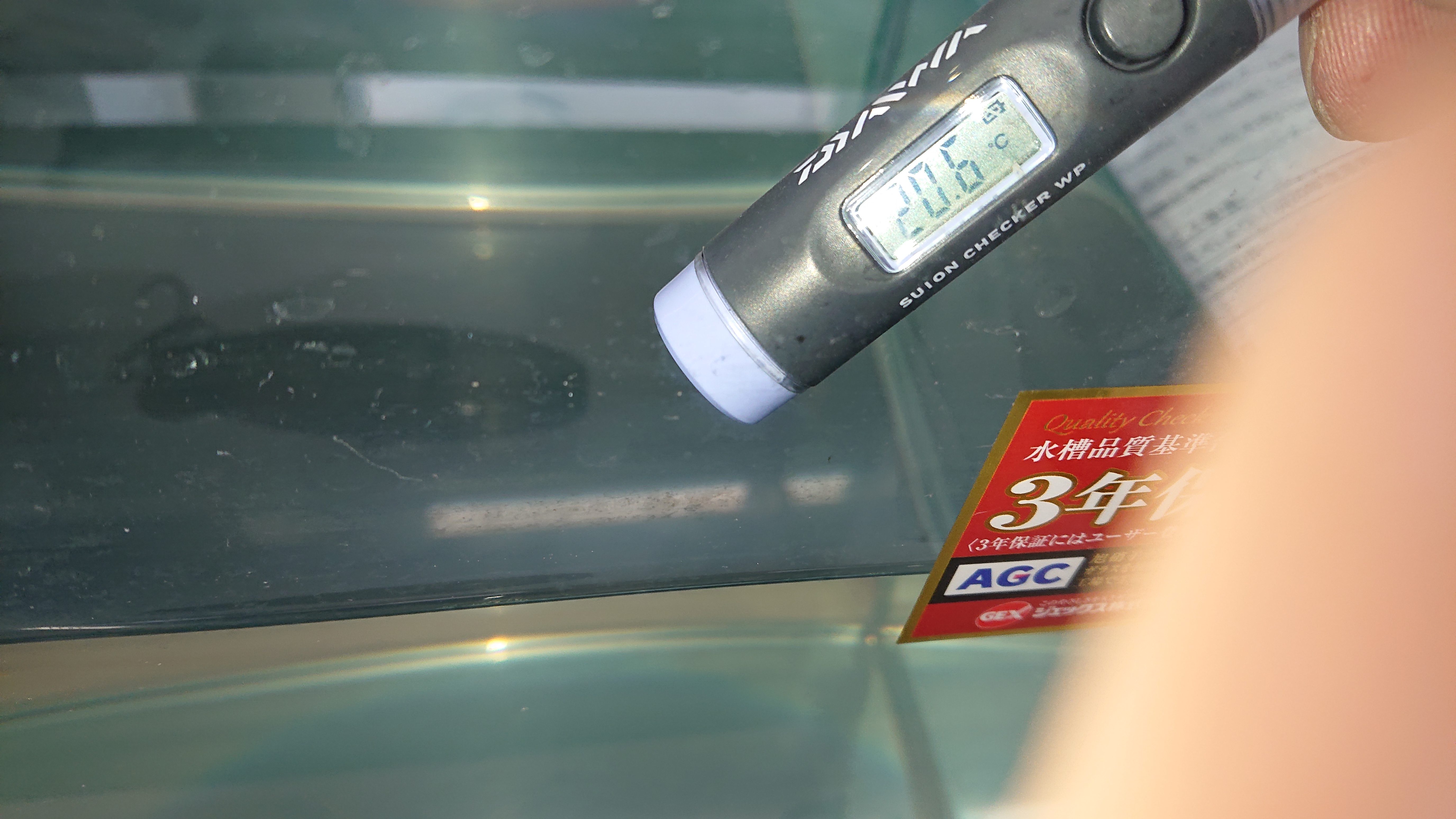 二個も付いてて安かったので、壊れても予備として使えると思いましたが却下。デジタル水温計は、太陽光で熱を持つと水温計がバグります。